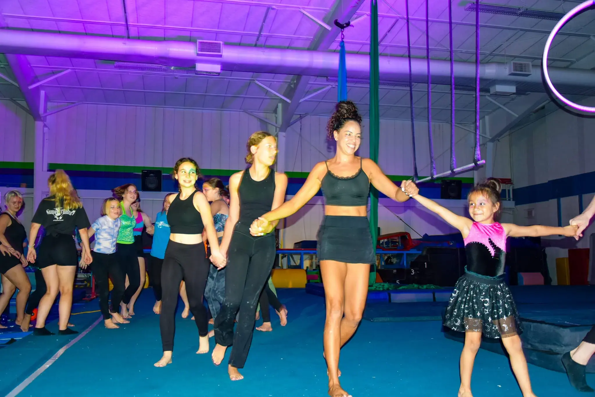 Including flying trapeze, static trapeze (single, double, and triple), diablo, juggling, unicycle, lyra, spanish web, and silks.